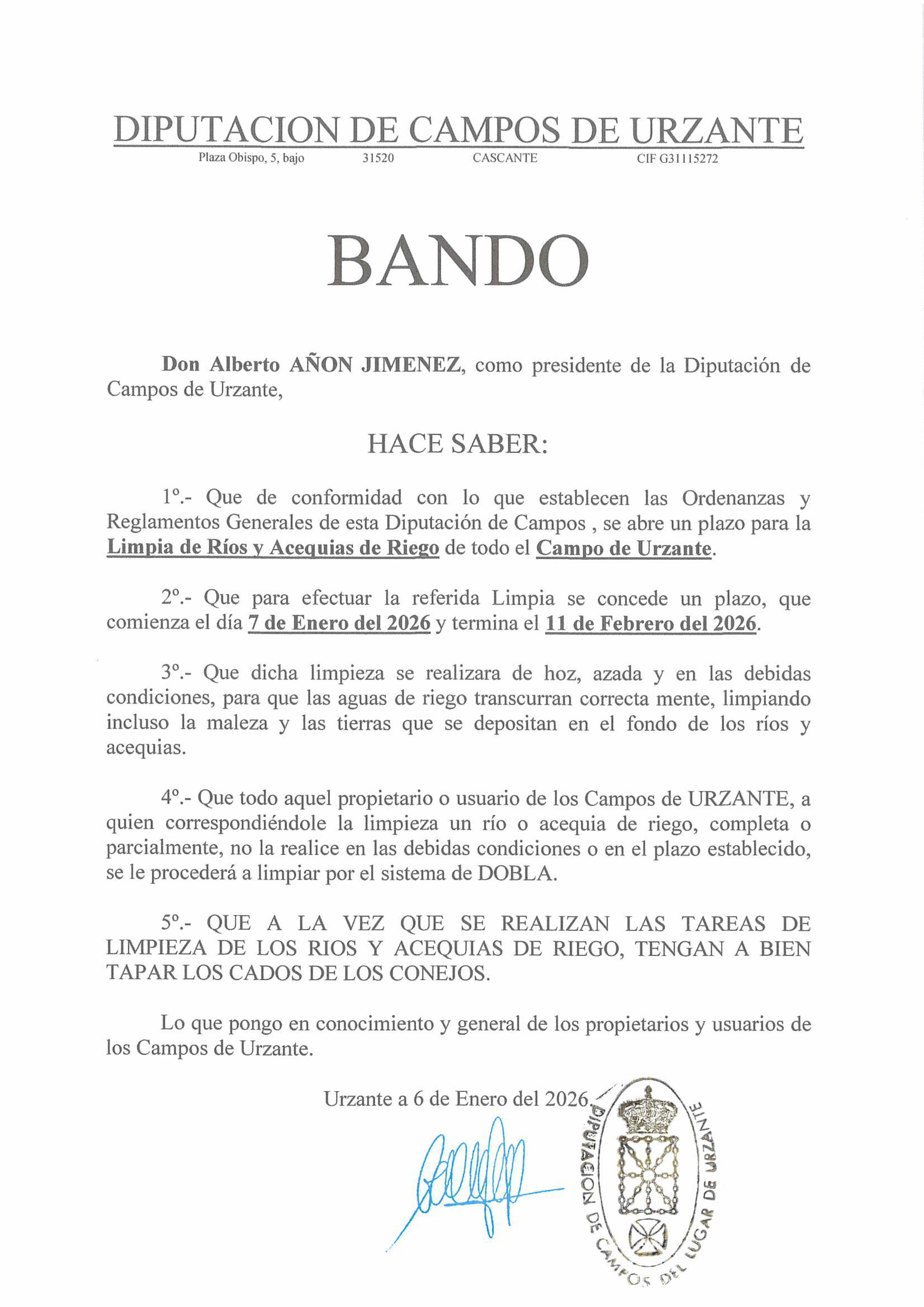 La junta de gobierno de la CGU del Canal de Lodosa ha acordado la fecha de corte del canal para su acondicionamiento y mejora, y que será la siguiente...