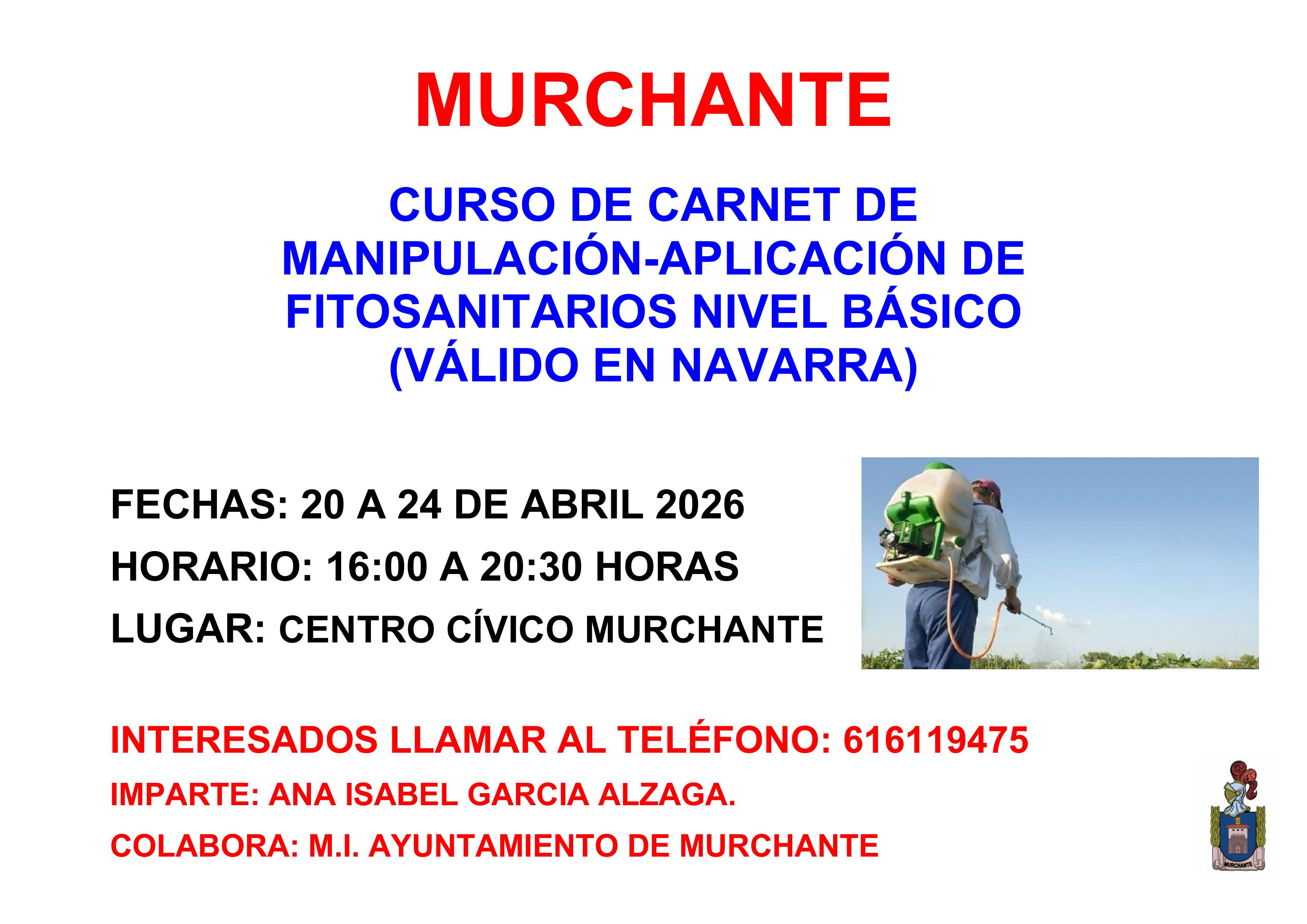 Cursos de obtención y renovación del carnet de manipulación de productos fitosanitarios a nivel básico.