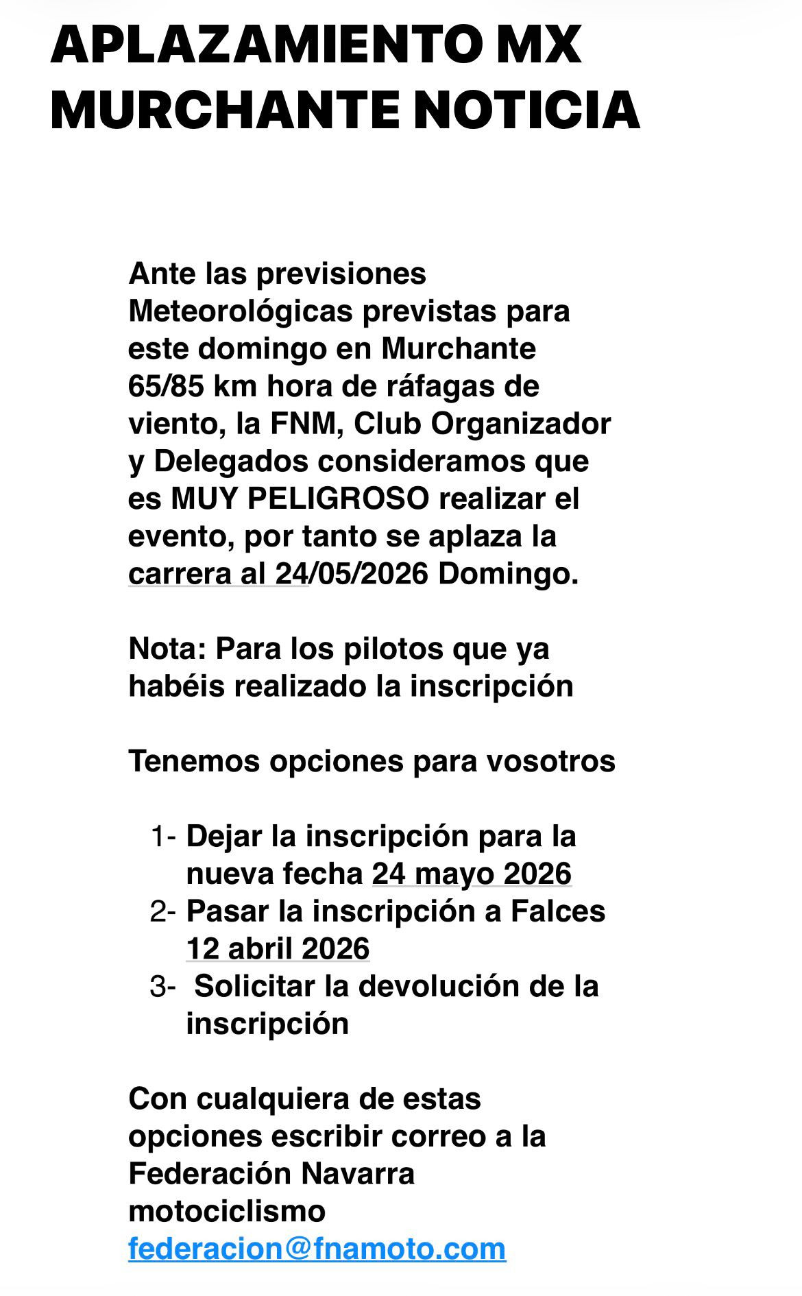 Os hacemos llegar esta información para comunicaros que, a partir del próximo sábad...
