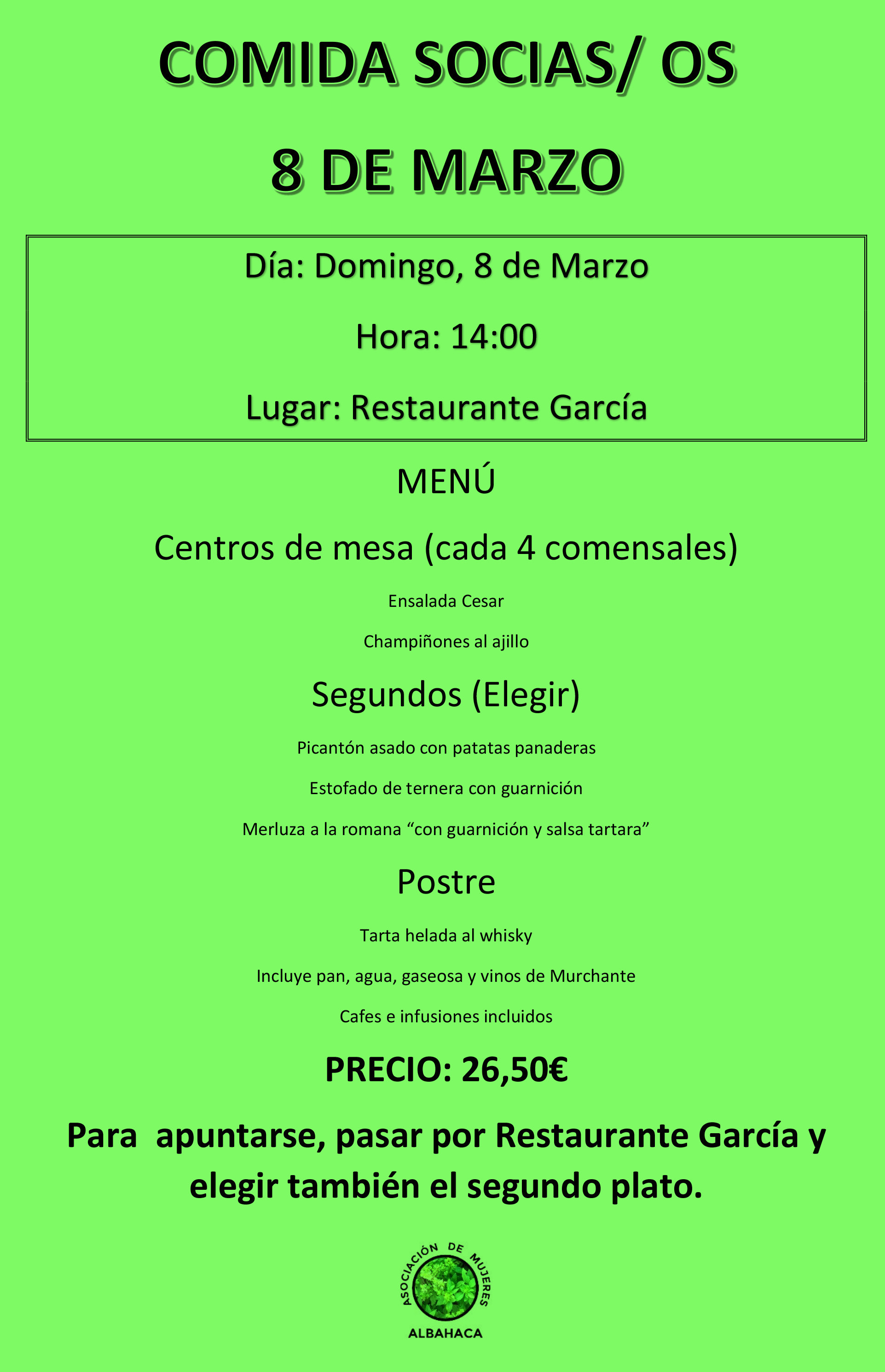 Inscripciones hasta el día 26 de febrero (se podrá apuntar y pagar en la reunión).