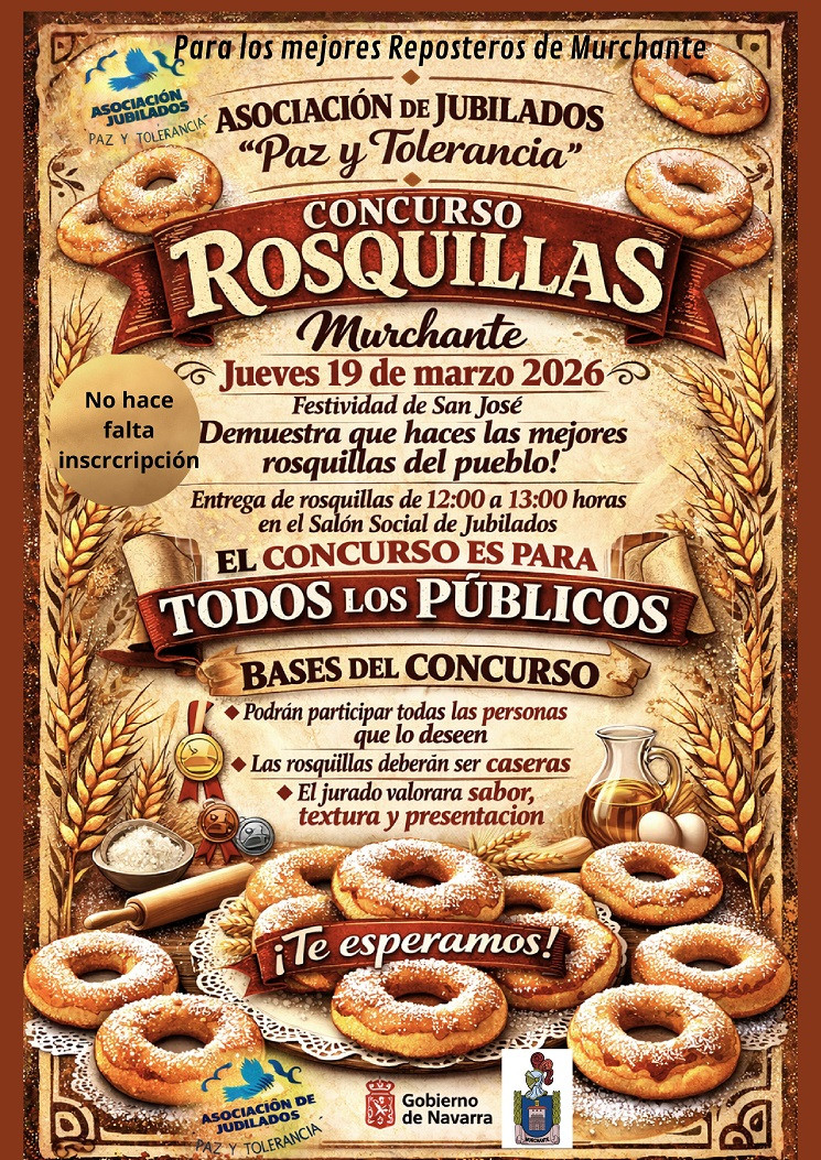 Entrega de rosquillas de 12:00 a 13:00 horas en el salón social del Club de Jubilados.