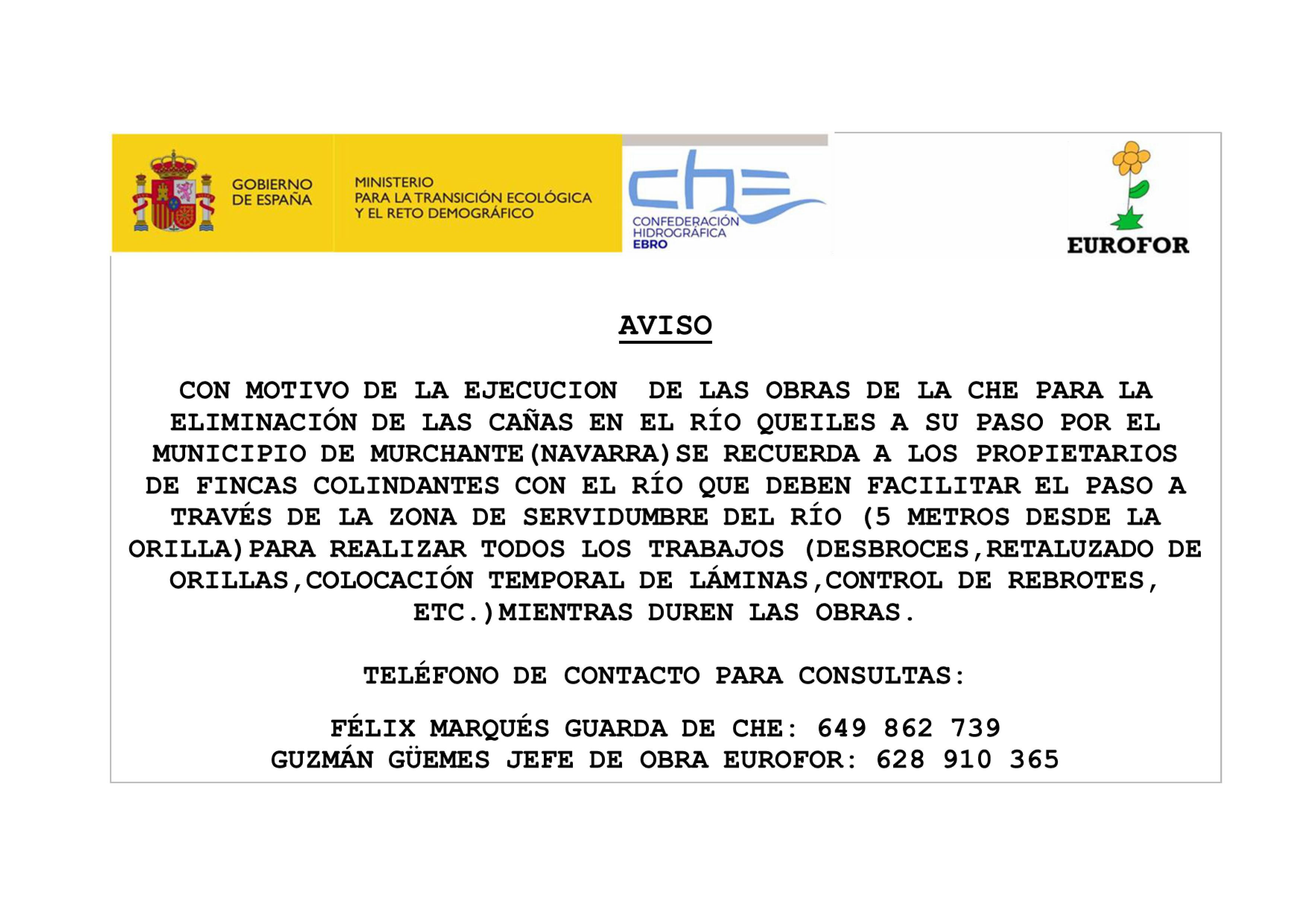 Obras de la CHE para la eliminación de la cañas del río Queiles.