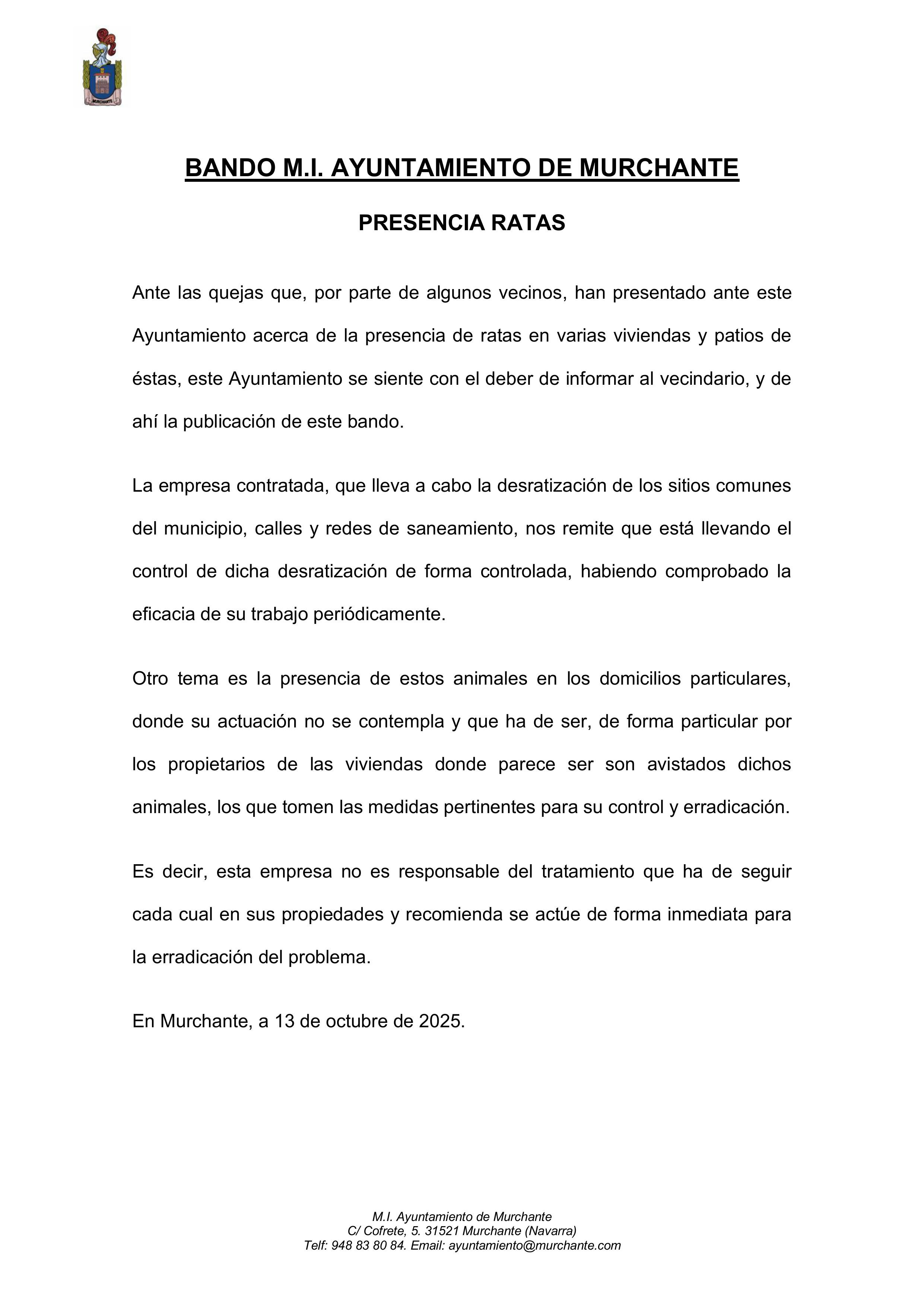Ante las quejas que, por parte de algunos vecinos, han presentado ante este Ayuntamiento acerca de la presencia de ratas en varias viviendas y patios...