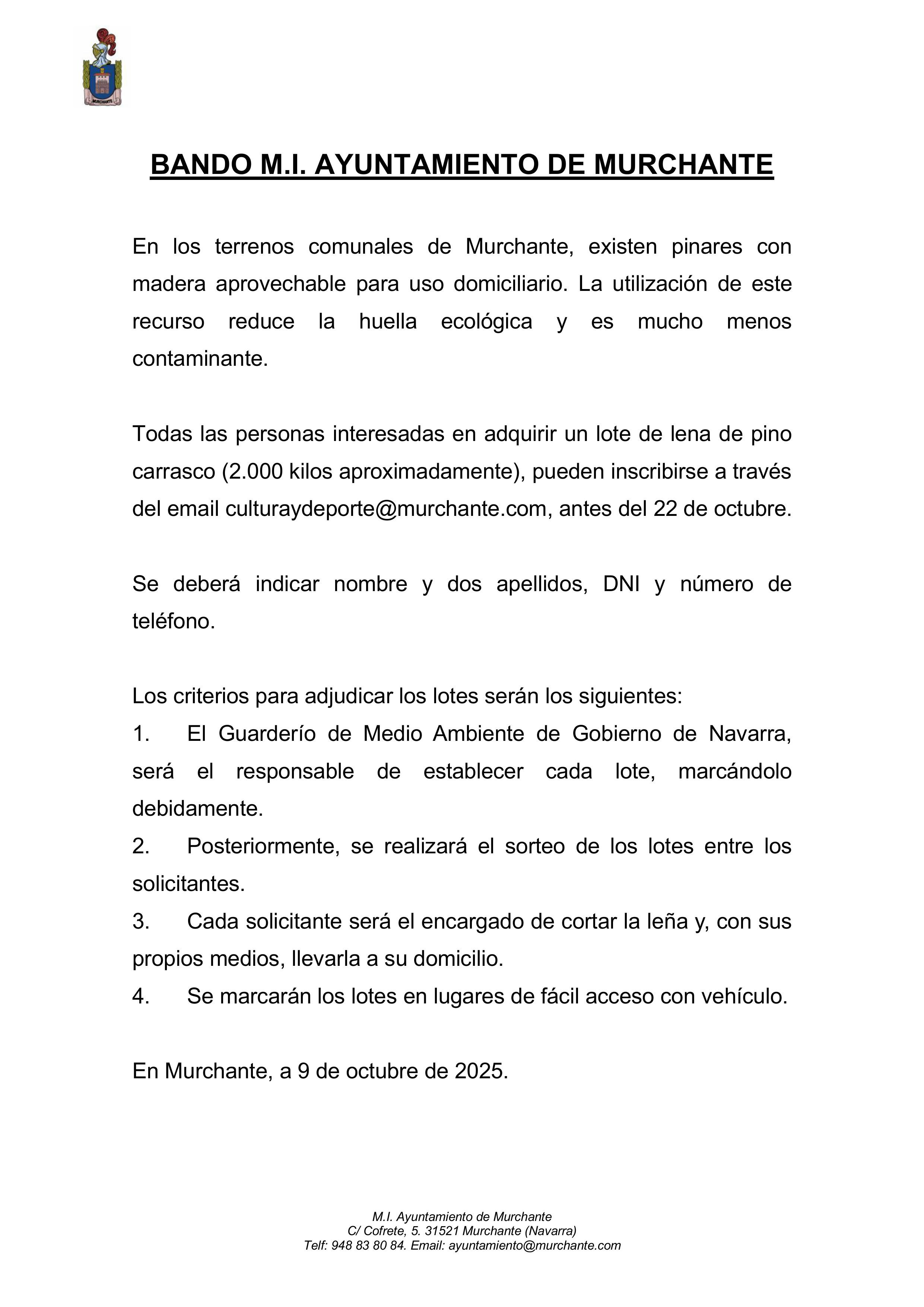 En los terrenos comunales de Murchante, existen pinares con madera aprovechable para uso domiciliario. La utilización de este recurso reduce la huella...