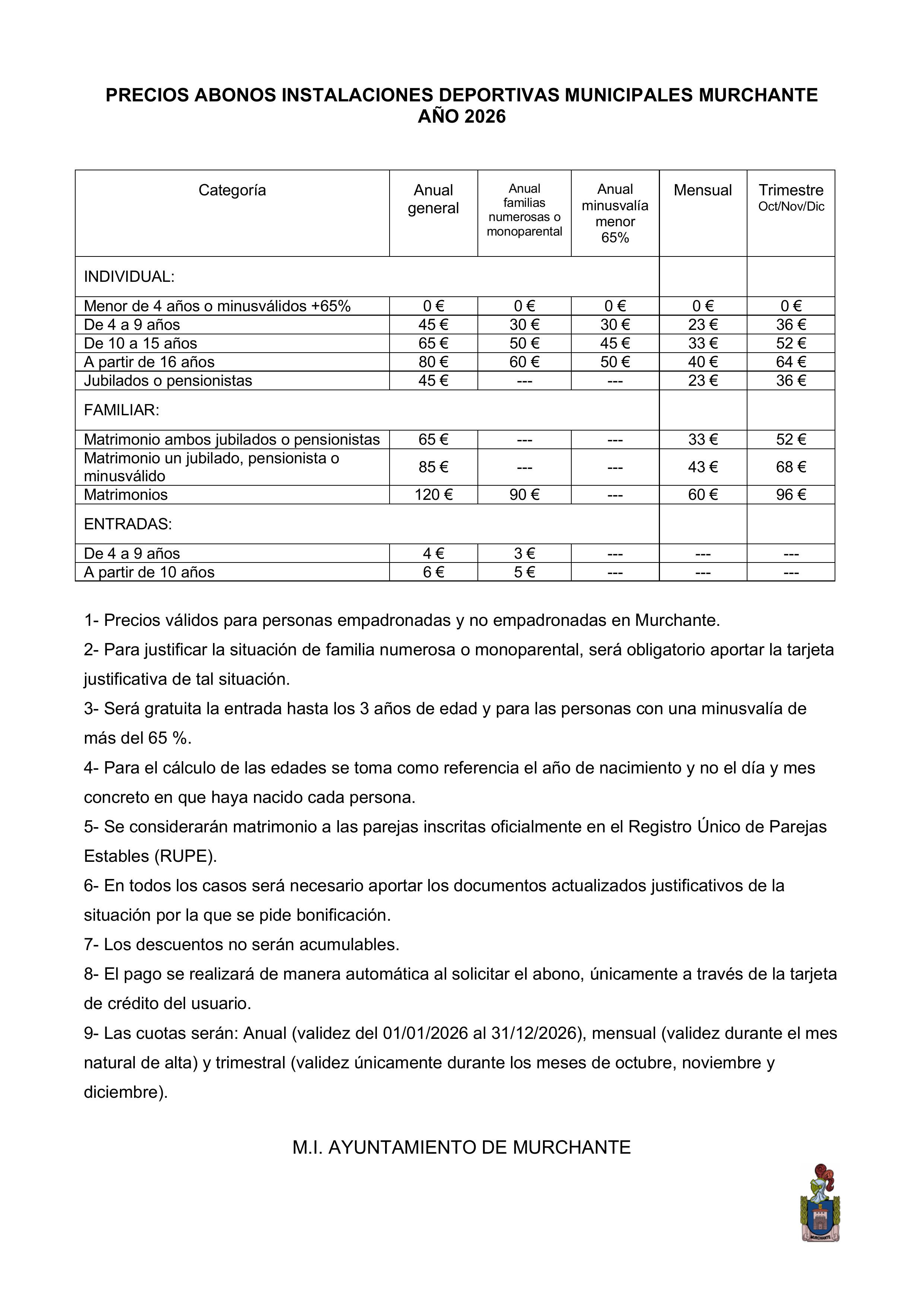 - 26 DICIEMBRE: DE 09’00 A 21’00 HORAS