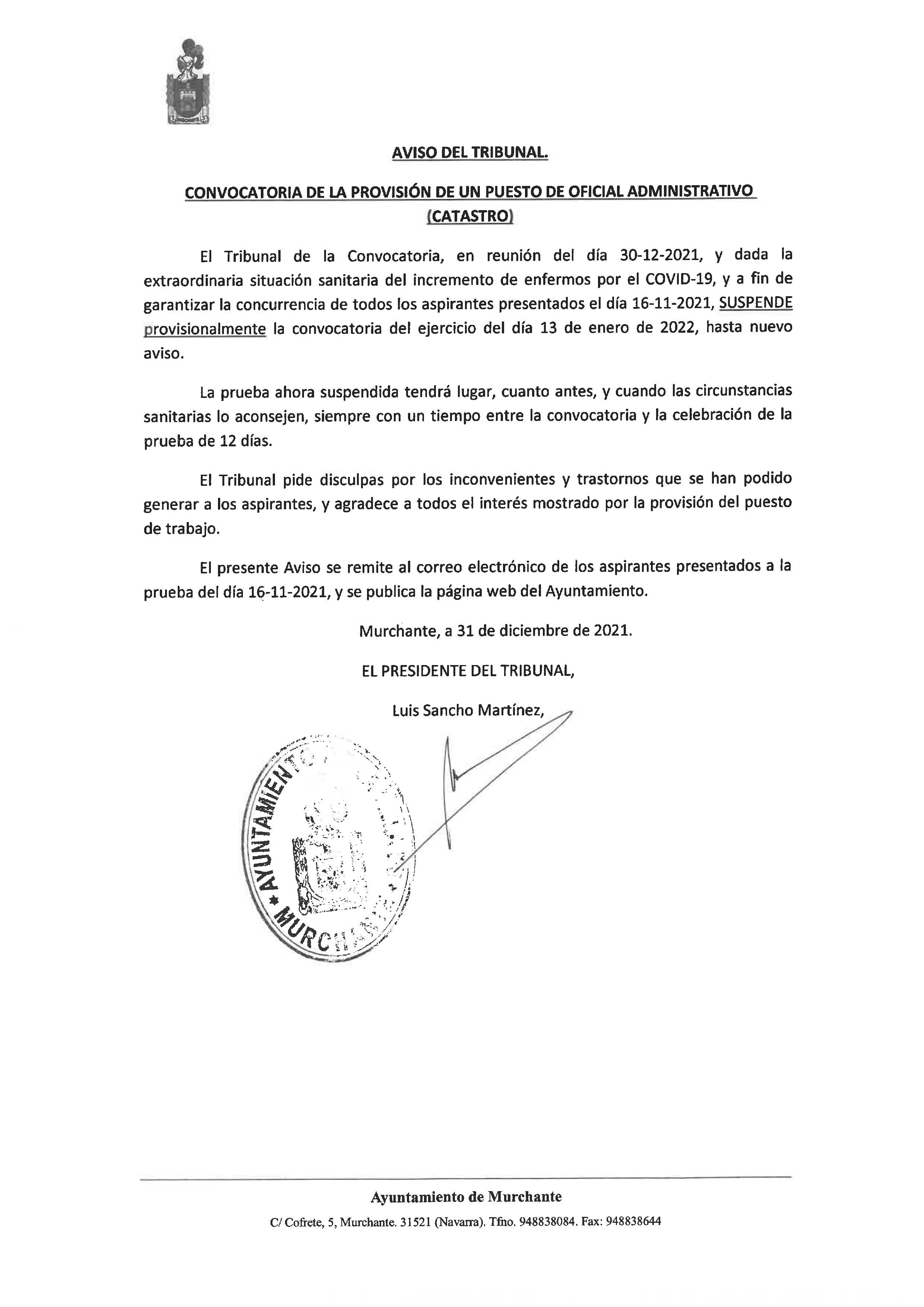 Suspensión provisional de la convocatoria del examen de oficial administrativo, prevista para el 13 de enero.