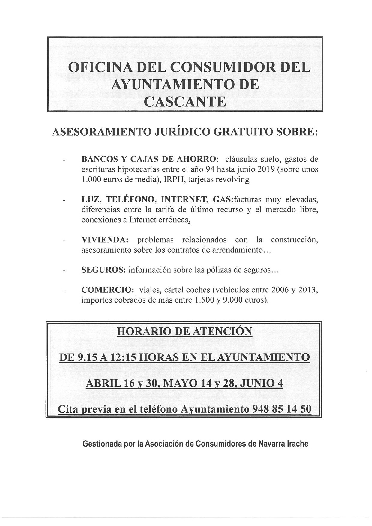 SERVICIO GRATUITO PARA LOS VECINOS Y VECINAS DE CASCANTE EN EL AYUNTAMIENTO