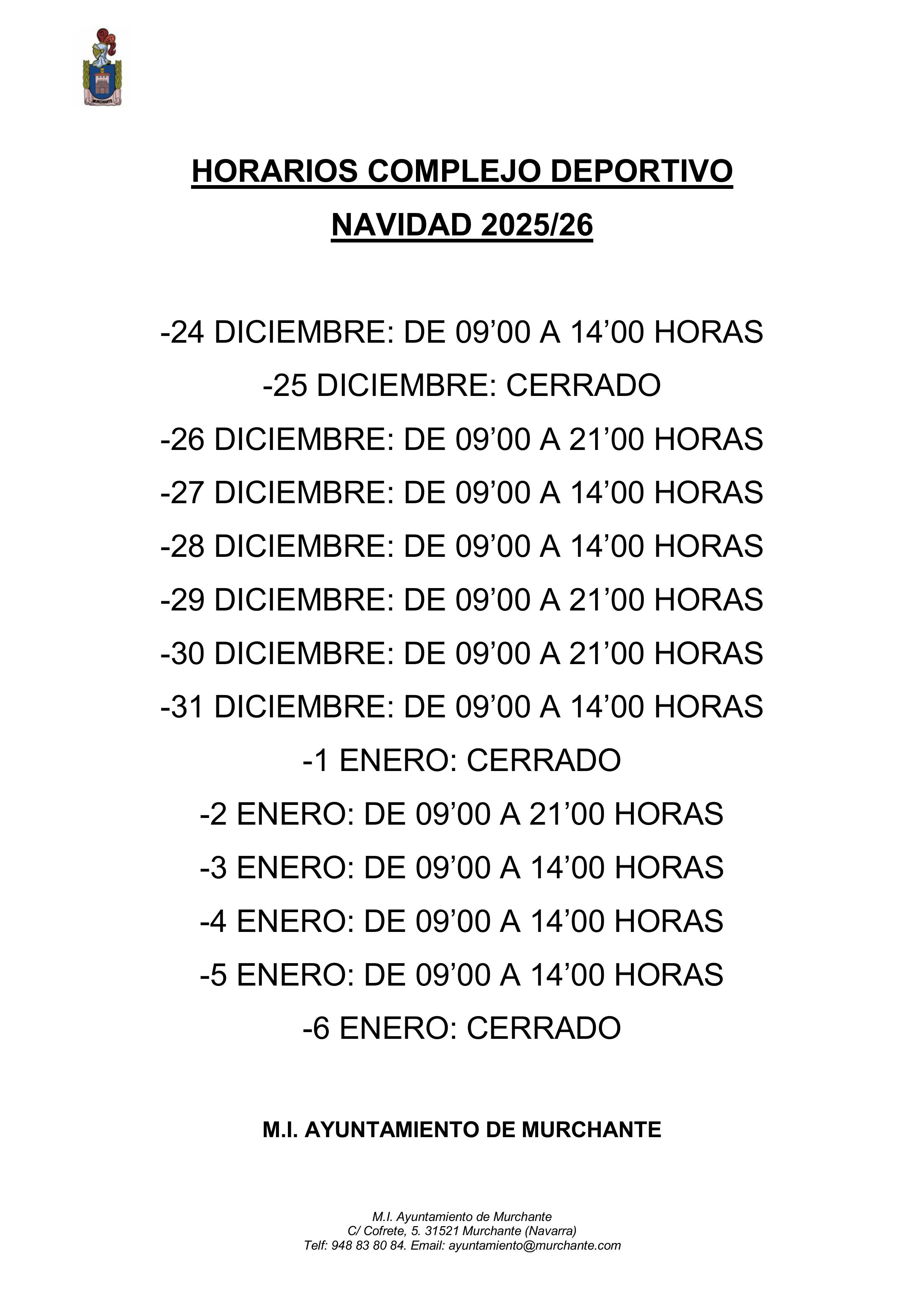 - 26 DICIEMBRE: DE 09’00 A 21’00 HORAS
