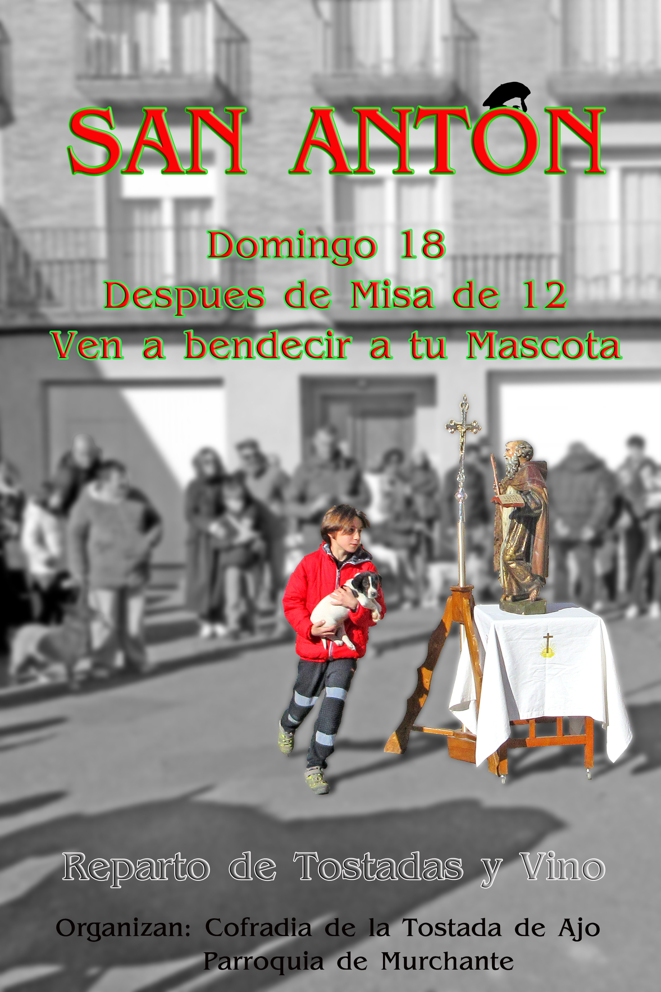 Bendición de las mascotas después de la misa de 12:00 horas. Reparto de tostadas y vino.