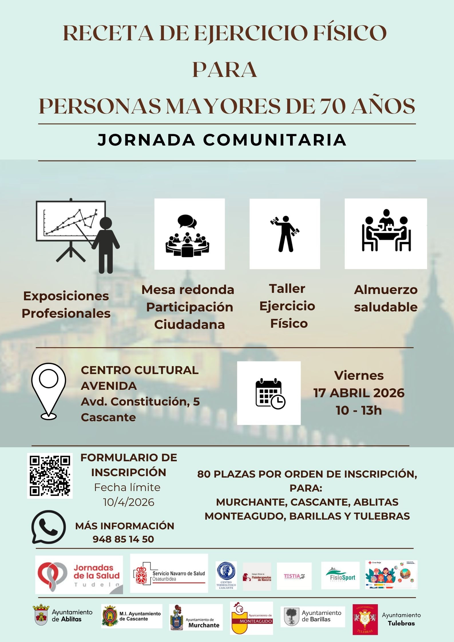Receta de ejercicio físico para personas mayores de 70 años. Programa completo de actividades en las imágenes inferiores. Inscripciones hasta el 10 de abril.