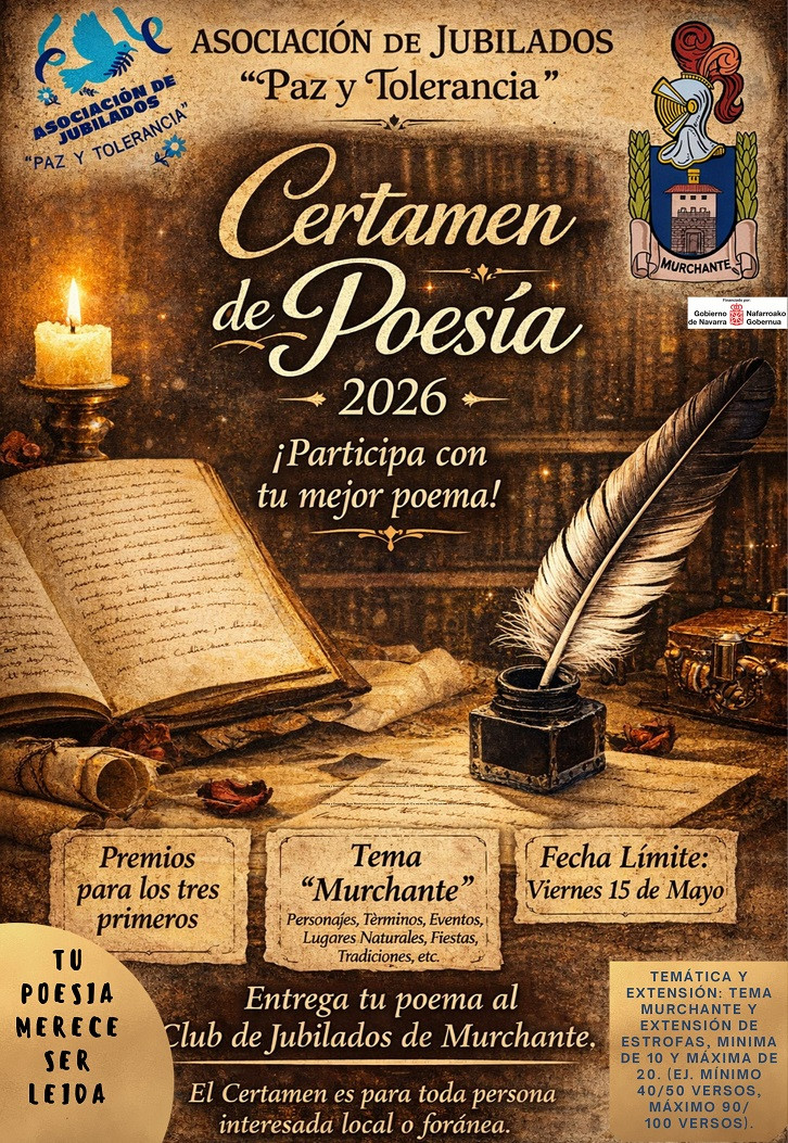 Entrega tu poema en el Club de Jubilados de Murchante. Tema: Murchante. Fecha límite: 15 de mayo.