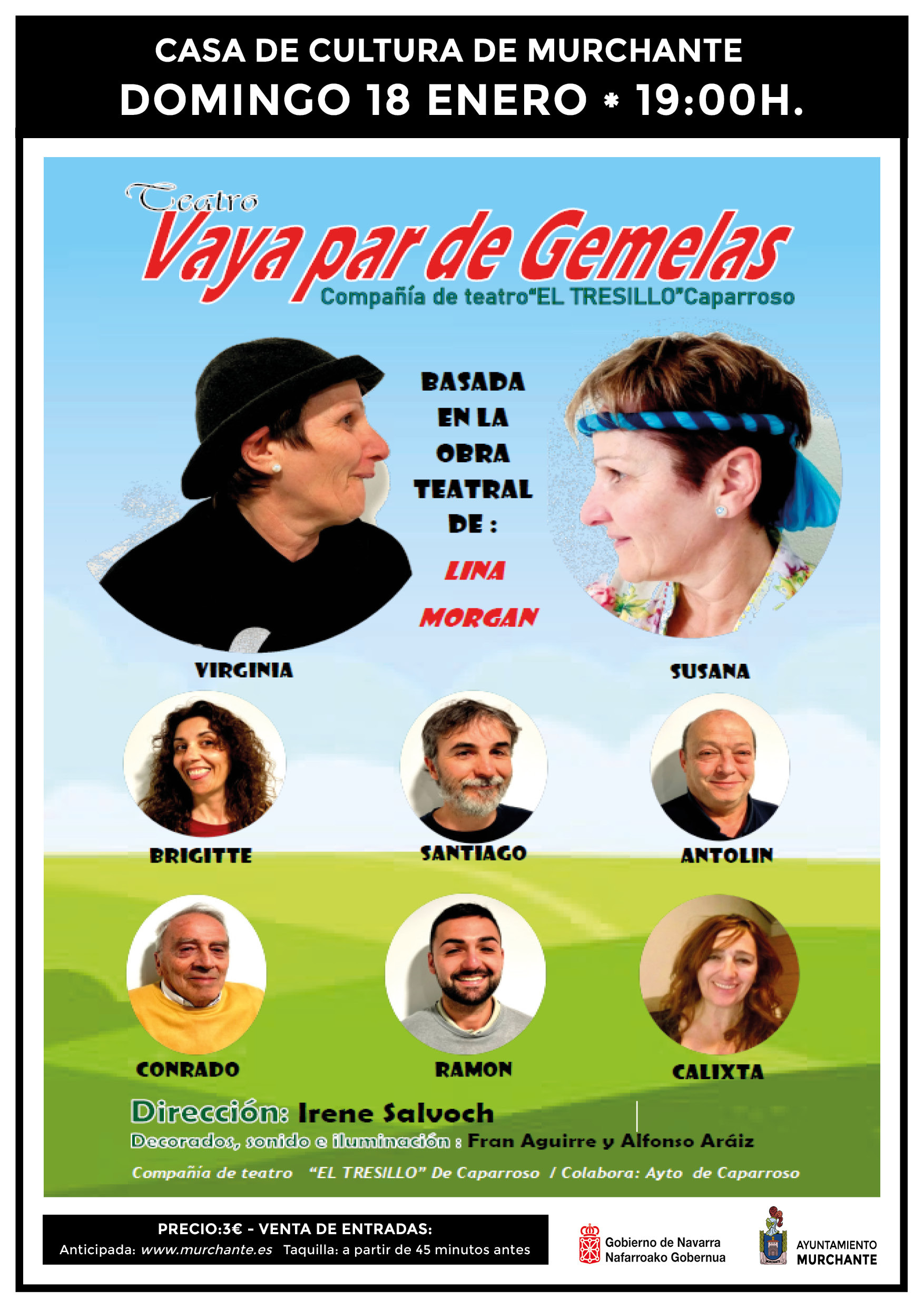 “Vaya par de gemelas”, de la compañía de teatro El Tresillo, a representar en la Casa de Cultura de Murchante, el día 18 de enero, a las 19’00 horas....